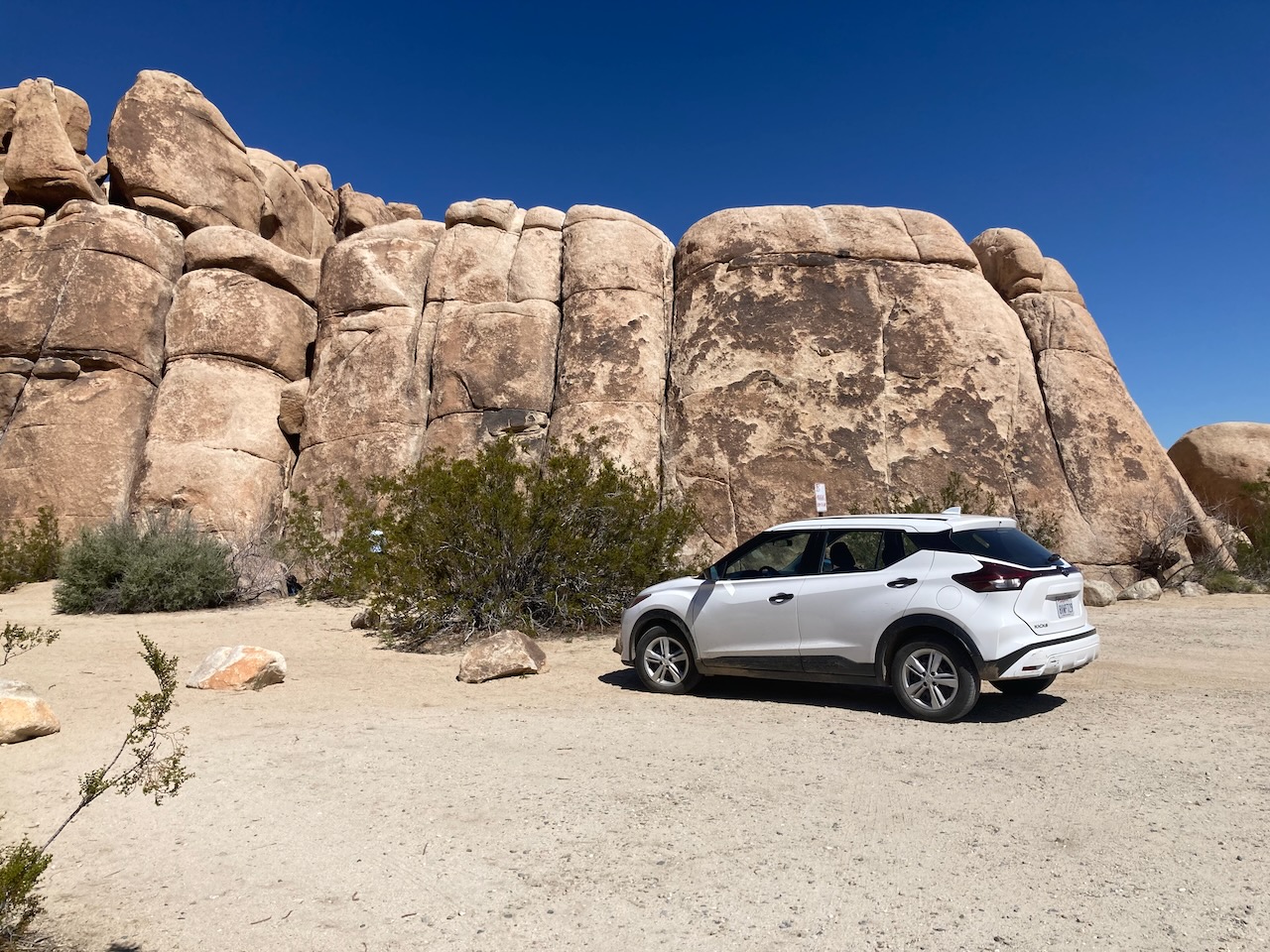 There isn’t much of an approach hike to get to the Short Wall. Our rental car is in the parking area right in front of the wall.
